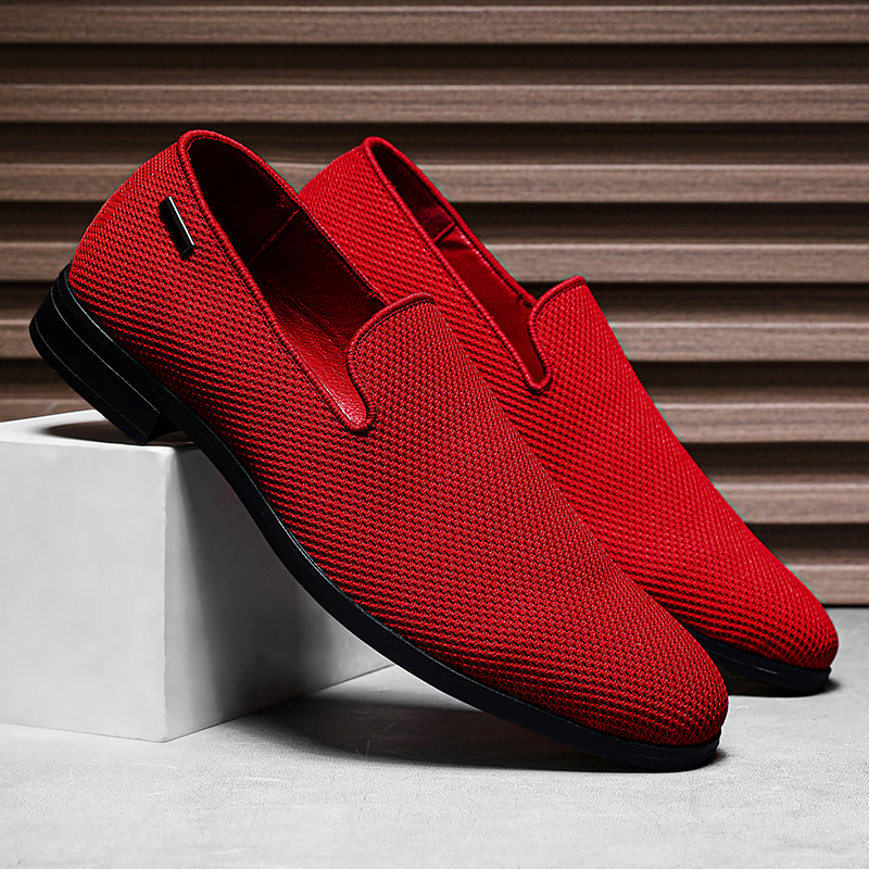 Men's Red Breathable Knit Slip-On Shoes, Lightweight Casual Walking Loafers for Summer, Travel and Streetwear Fashion