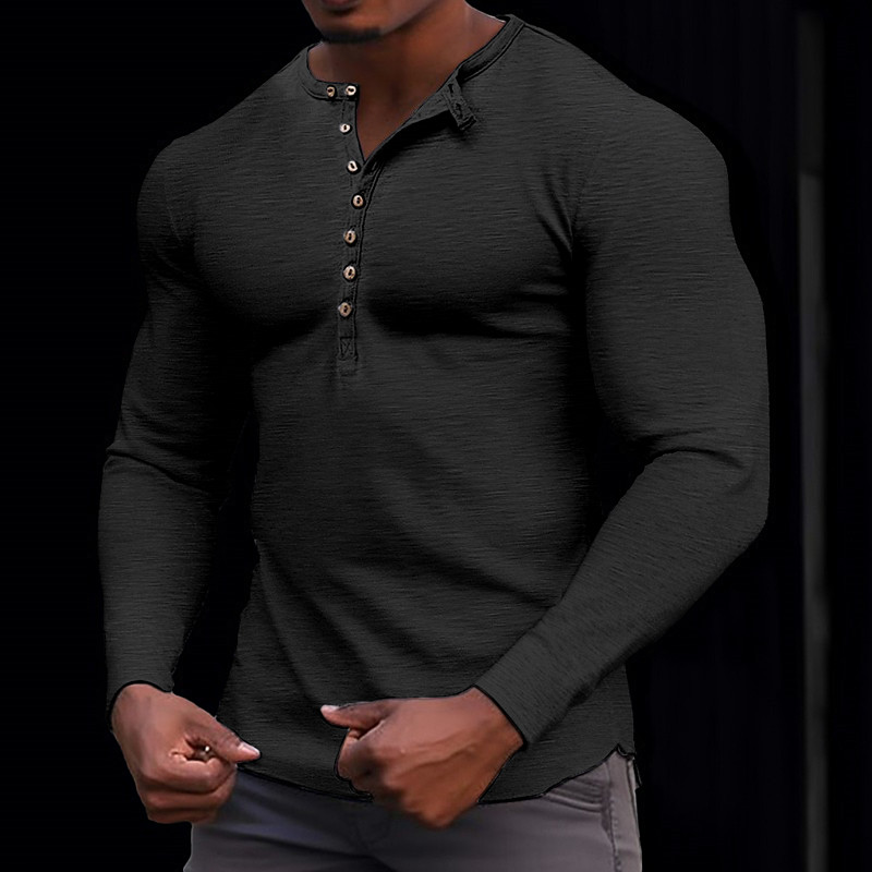 100% Cotton Men's Henley Shirt Tee Top Long Sleeve Shirt Long Sleeve Solid Color Fashion Daily Buttons Henley Outdoor Casual Summer Dark Brown Army Green Dark Grey Henley T-Shirt