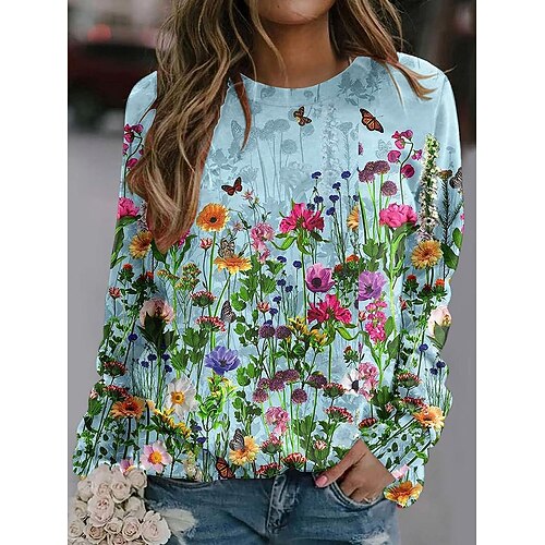 Per donna Felpa Pullover Grafico Casual Manica Lunga Girocollo Top Regolari Casuale Streetwear Ferie Stampato Blu Bianco Giallo Azzurro cielo Viola Primavera Inverno