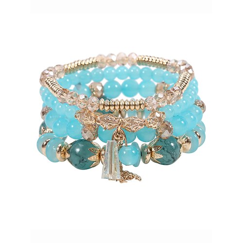 set di braccialetti da donna con perline di cristallo finto e accenti dorati, braccialetti elastici a strati in stile boho per feste, matrimoni e uso quotidiano