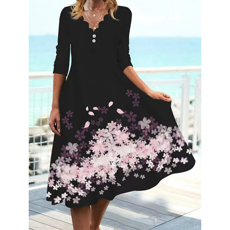 Women's Midi Dress A Line Dress Casual Outdoor Going out Standard Fit Floral 3/4 Length Sleeve V Neck Pink Blue Purple Spring Fall