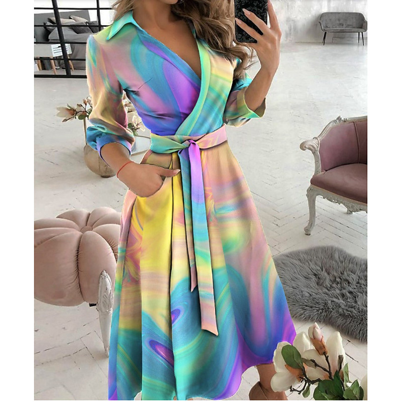 Women's Midi Dress Graduation Dress Blazer Dress Sheath Dress Wrap Dress Party Cocktail Semi Formal Formal Vacation Party Regular Fit Long Sleeve V Neck Black Blue Green Rainbow Spring Fall Winter