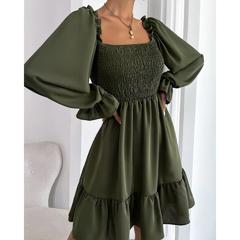 Women's Mini Dress Peplum Dresses Ruched Dress Modern Outdoor Holiday Going out Regular Fit Plain Long Sleeve Square Neck Black Wine Army Green Light Brown Spring Fall