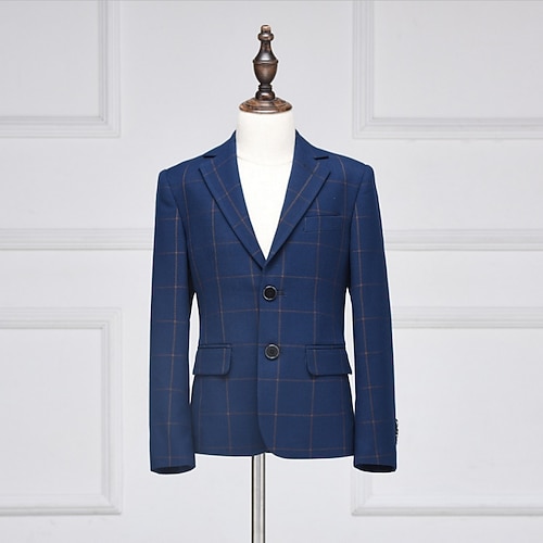 Kinder Jungen Blazer Oberbekleidung Karomuster Langarm Tasche Knöpfe Mantel Party Mode Streetwear Cool Blau Schwarz Grau Frühling Herbst 4-12 Jahre