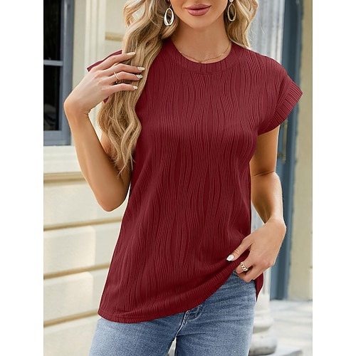 Per donna Maglietta Testurizzato Tinta unica Elegante Moda Casual Manica Corta Ad aletta Girocollo Top lunghi Casuale Quotidiano Uscire Nero Bianco Rosa Vino Verde militare Estate Primavera