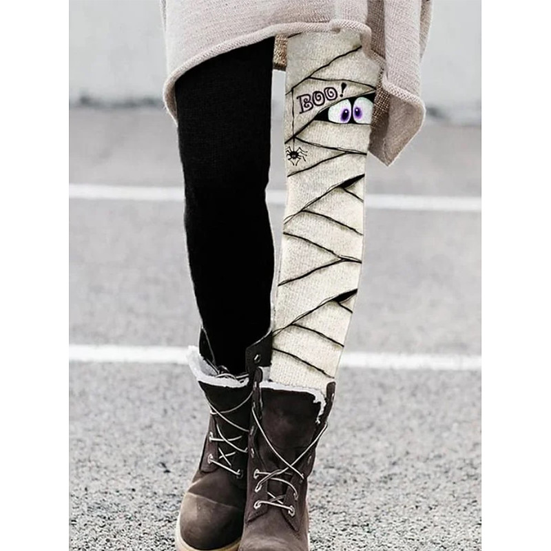 Women's Leggings Vacation Vintage Fashion Ankle-Length High Waist Graphic Monster Printing Soft Breathable Stretchy Formal Outdoor Vacation Black Green Ash Black and Dark Gray Black 1# Spring Fall
