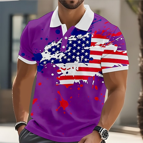 4. Juli 2026 250. Herren Amerikanische Flagge Poloshirts Kurzarm Polo-Shirts Hemden mit Kragen Lässig Athleisure Knöpfe Frühling Sommer Blau Weiß Rote