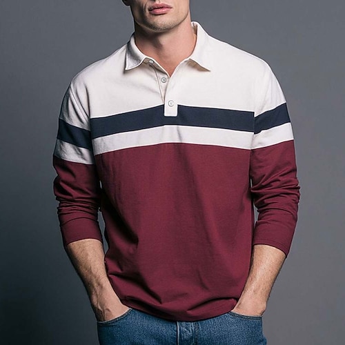 Herren Farbblock Geometrisch Polo Langarm Polo-Shirts Revers Lässig Outdoor Athleisure Alltagskleidung 3D-Druck Knöpfe Frühling Herbst Winter Blau Rote Grün