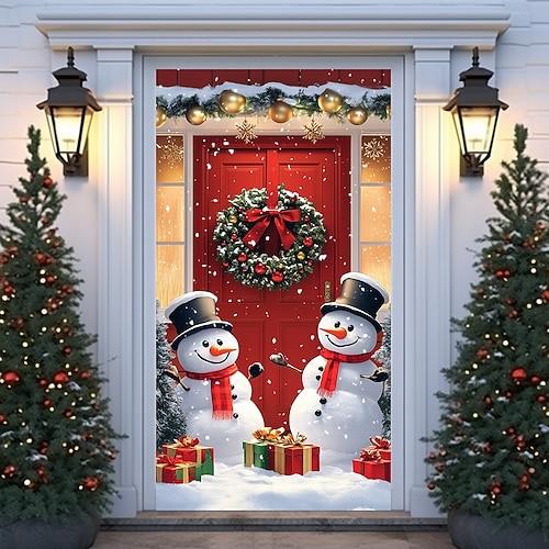 Copriporta natalizio, decorazione invernale per le feste, con stampa di pupazzo di neve e ghirlanda natalizia, per ingresso, soggiorno, camera da letto, interni ed esterni, decorazioni festive