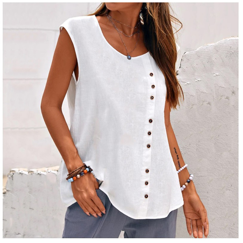 Women's T Shirt Plain Casual Sleeveless U Neck Regular Tops Daily Weekend Buttons Black White Pink Light Brown Orange Summer