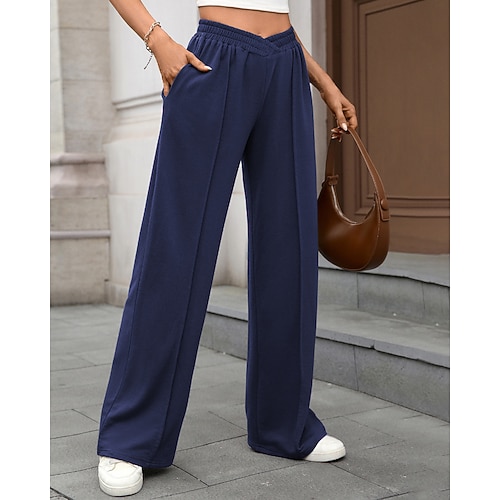 Per donna Gamba larga Pantaloni Eleganti Streetwear Casual Lunghezza intera Naturale Semplice Tasca Elastico in vita Comodo All'aperto Confortevole Vacanza Uscire blu navy Aalbicocca Grigio Nero