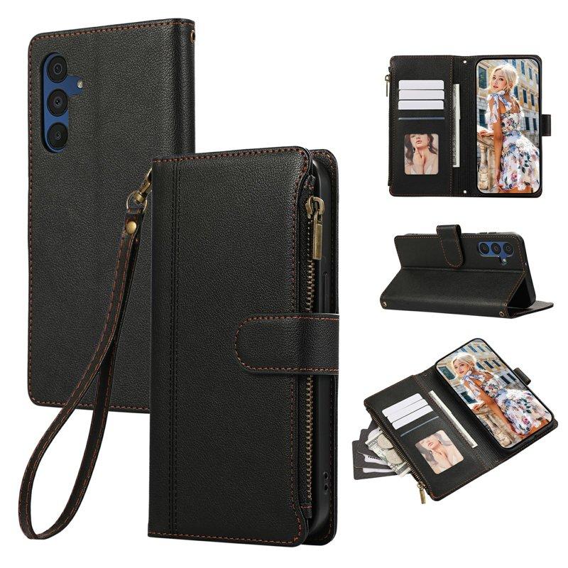 Samsung Galaxy A55 5G Plånboksfodral Konstläder 15 Kortplatser - Svart