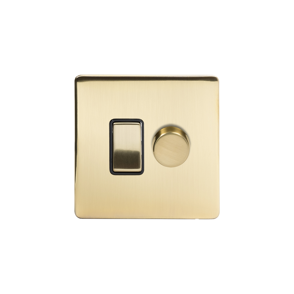 Soho Lighting Brushed Brass Dimmer and Rocker Switch Combo (2-Way Switch & 2-Way Intelligent Dimmer) - Size: 86mm x 86mm