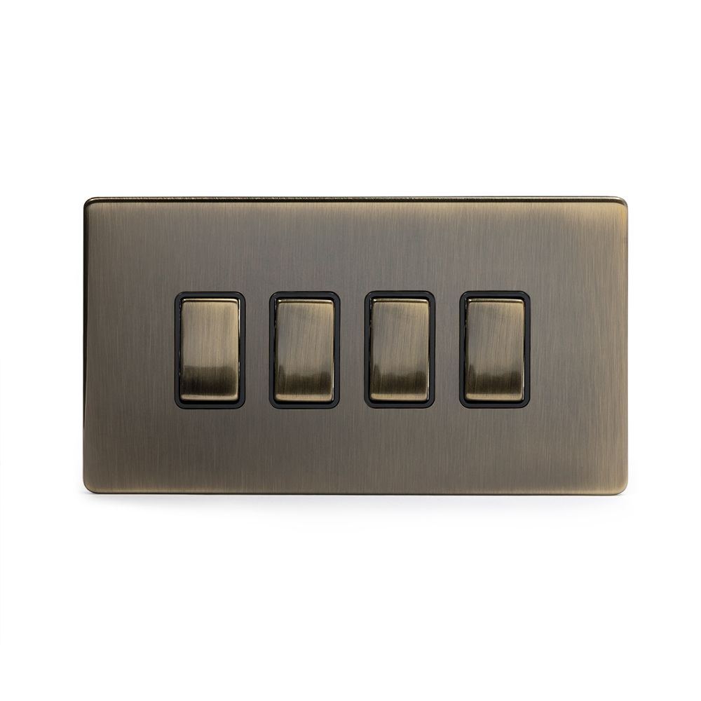 Soho Lighting Antique Brass 4 Gang Switch With 1 Intermediate (3 x 2 Way Switch with 1 Intermediate) Bk Ins Screwless - Size: H 86mm X W 146mm