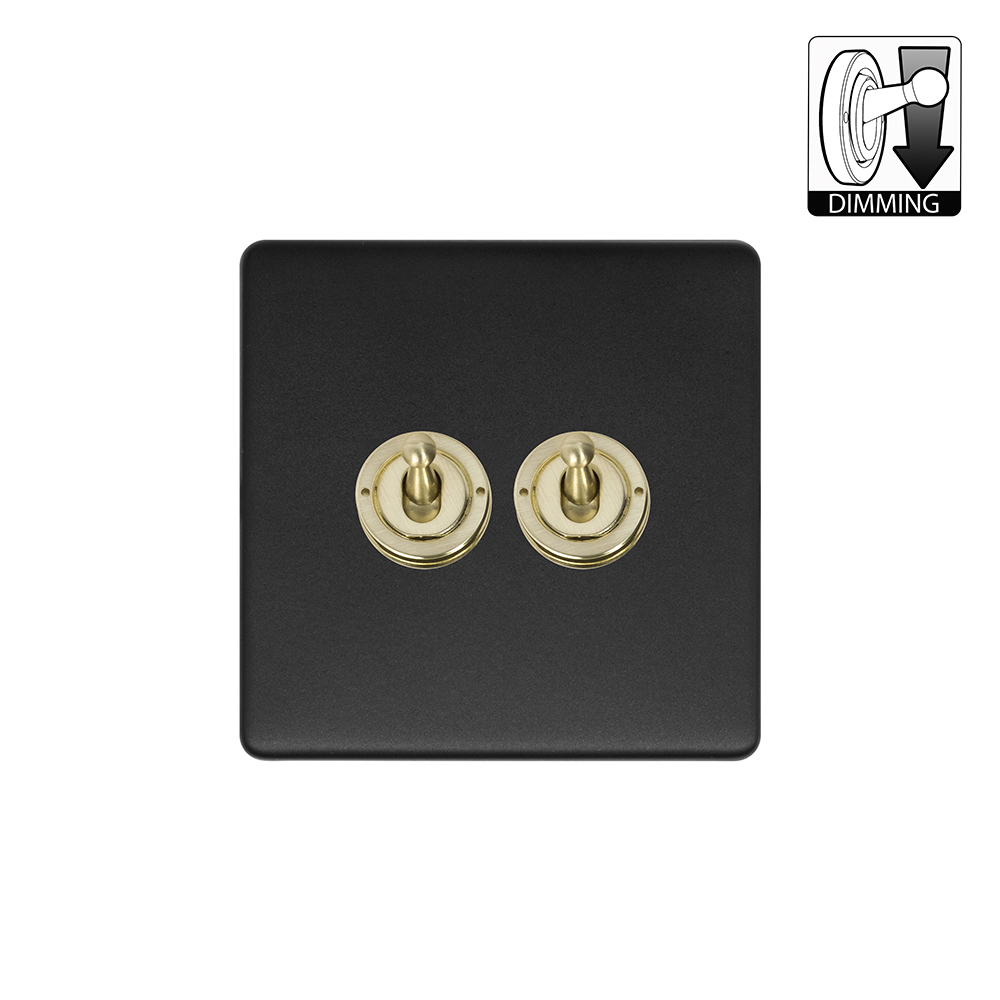 Soho Lighting Lighting Matt Black & Brushed Brass 2 Gang Dimming Toggle Switch