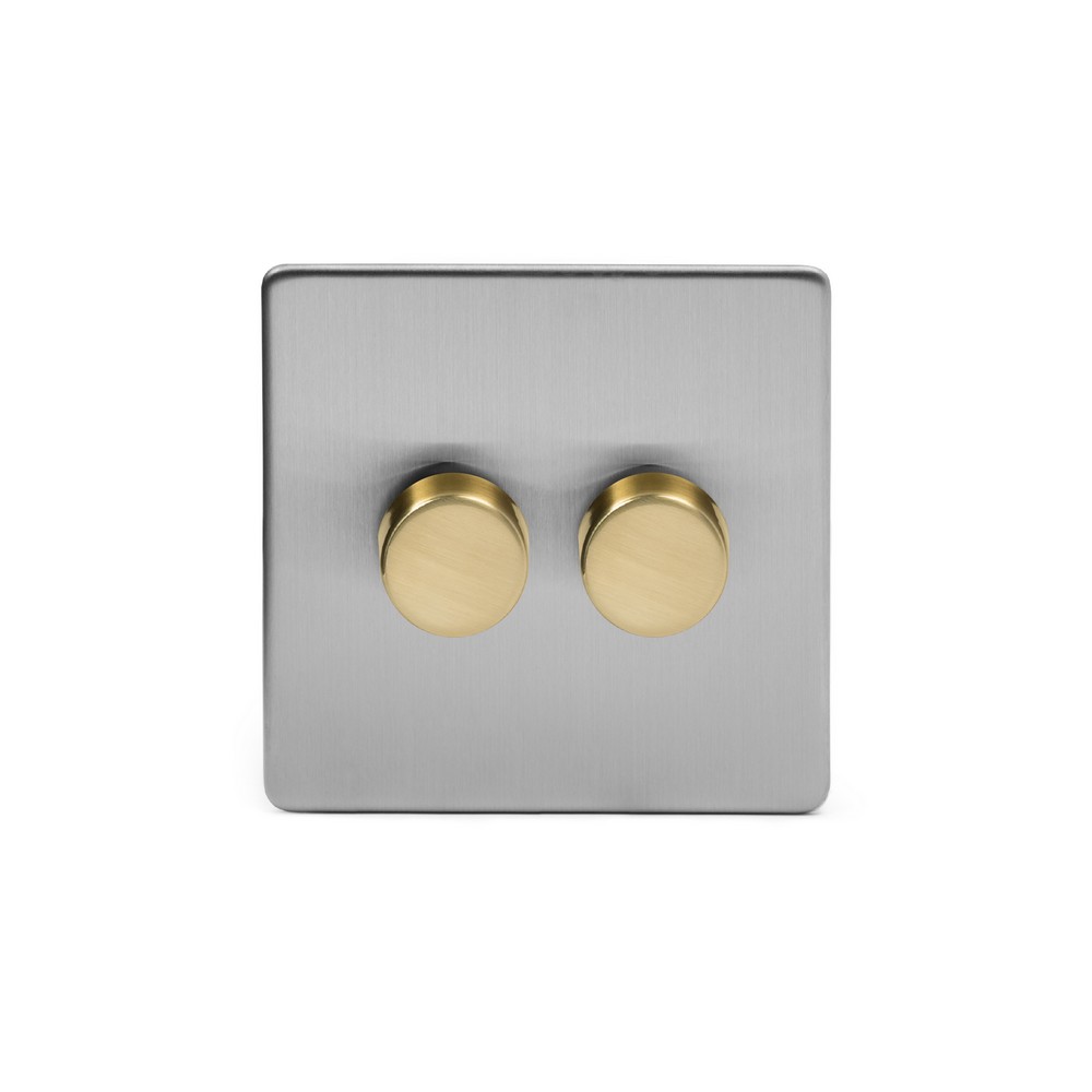 Soho Lighting Brushed Chrome & Brushed Brass 2 Gang 400W LED Dimmer Switch