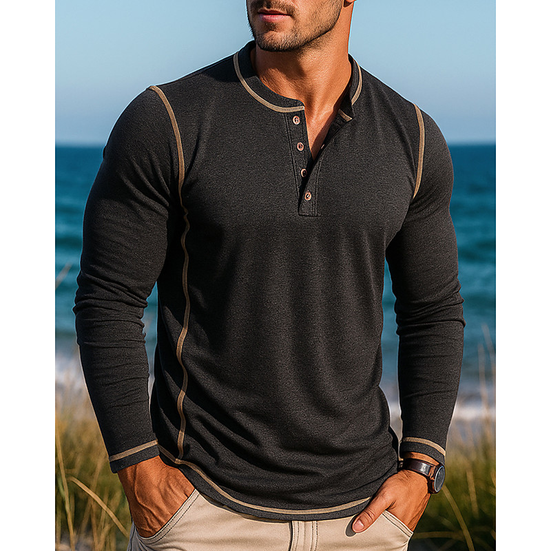 Men's Casual Shirt Hiking top Henley Shirt Long Sleeve Top Outdoor Breathable Cotton Black White Army Green Tennis Golf Running
