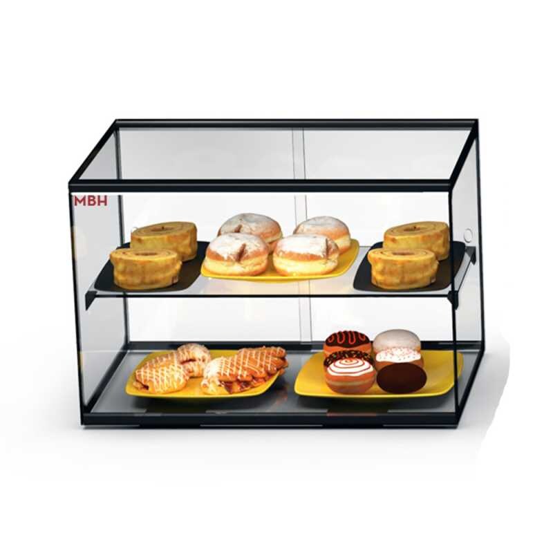 MBH - MAQUINARIA BAR HOSTELERIA MBH - Neutrale Doppelvitrine mit LED-Beleuchtung, 55 cm, 2 Ebenen, für Gastronomie. Neutrales Glasdisplay für Gebäck und Süßwaren.