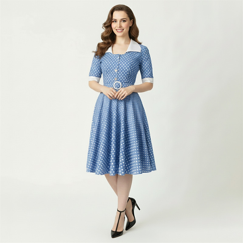 Rockabilly Midi A Line Dress Short Sleeves Fit Flare Fancy Dress Women's Carnival Valentine's Day Casual Homecoming Retro Theme Party Adults' Dress Spring