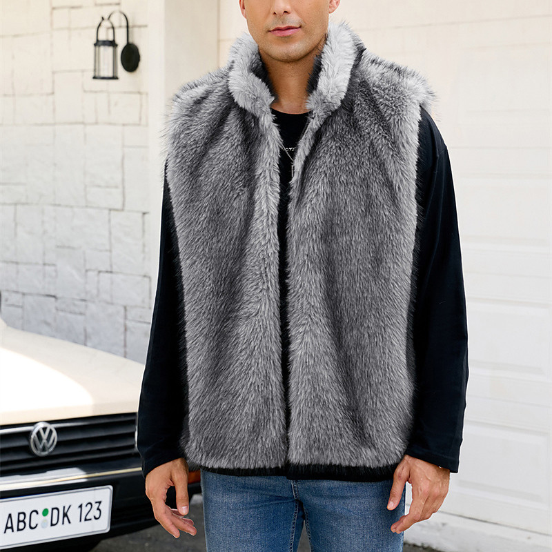 Men's Vest Faux Fur Gilet Outdoor Daily Fashion Casual Fall Winter Faux Fur Thermal Warm Comfortable Plain Standing Collar Regular Fit White Yellow Camel Gray Vest