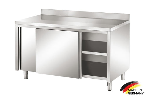 VM Europa Edelstahl Arbeitsschrank mit Zwischenboden - alle Größen montiert: 150 x 70 cm / mit Aufkantung / fertig montiert