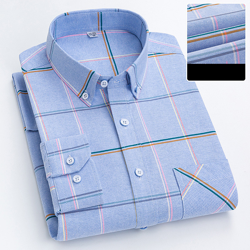 Men's Dress Shirt Button Down Shirt Oxford Shirt Non Iron Shirt Plaid Casual Daily Blue Black White Pink Long Sleeve Square Neck Spring Fall Clothing Apparel Button-Down