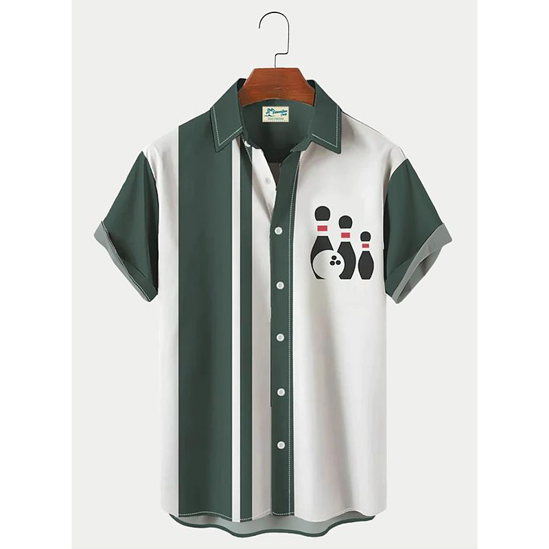 Men's Flame Bowling Ball Shirt Button Up Shirt Short Sleeve Tropical Fashion Hawaiian Outdoor Beach Summer Spring Turndown Print Button-Down Black Yellow Black / Red Red Dusty Blue