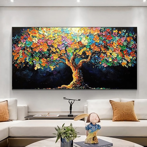 handgefertigtes originales farbenfrohes Ölgemälde mit blühendem Baum auf Leinwand, abstraktes Gemälde mit Lebensbaum für die Inneneinrichtung mit gespanntem Rahmen/ohne Innenrahmen