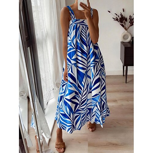 Per donna Abito lungo maxi Vestito Casual Abito a trapezio Abito Sottoveste Moda Moderno Quotidiano Vacanza Uscire Vestibilità comoda Floreale Geometrico Senza Maniche Spalline Blu Nero Bianco Rosa