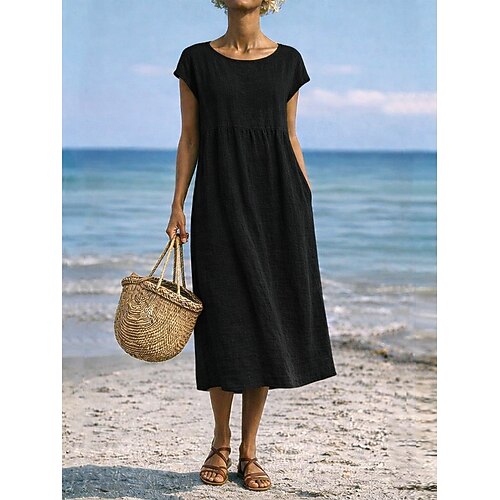 Per donna Abito Midi Abito a trapezio Abito Estivo Casual Quotidiano Vestibilità comoda Semplice Manica Corta Girocollo Blu Nero Bianco Rosa Estate Primavera