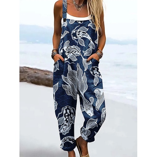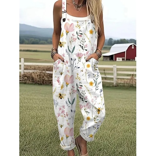 Per donna Tuta Attivo Floreale Senza Maniche Senza maniche Harem Collo quadrato Tasca Stampato Quotidiano Spiaggia Vestibilità comoda Blu Rosa Beige Estate