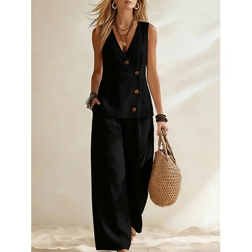Per donna Set di Pantaloni Senza Maniche Scollo a V Semplice Moda Streetwear Casuale Quotidiano All'aperto Blu Nero Rosa Estate Vestibilità comoda