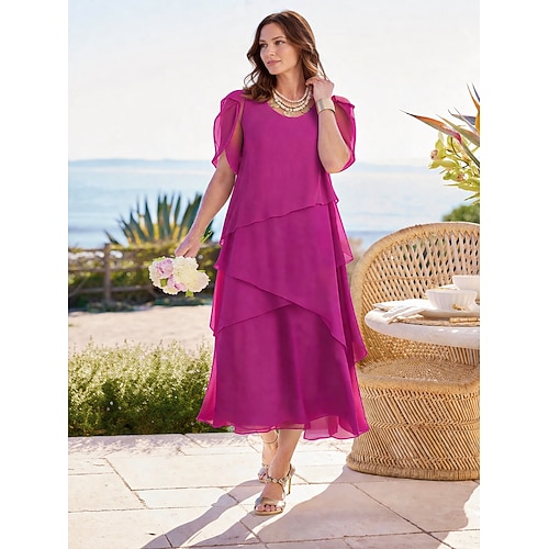 Per donna Abito Midi Vestito in Chiffon Elegante Quotidiano All'aperto Vacanza Vestibilità comoda Semplice Manica Corta Girocollo Marrone rossastro Fucsia Estate