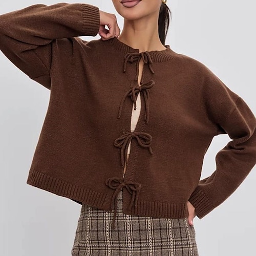 Per donna Felpa Cardigan Elegante Moda Carino Tinta unica Girocollo Lavorato a maglia Stampato Manica Lunga Top Regolari Maglia All'aperto Quotidiano Ferie Nero Bianco Autunno Inverno