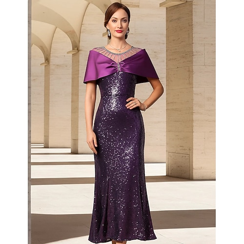 Vestito da festa a lunghezza caviglia in stile tubino abito da cocktail abito per invitata a matrimonio abito per madre della sposa maniche corte scollo rotondo elegante vintage festa spandex con