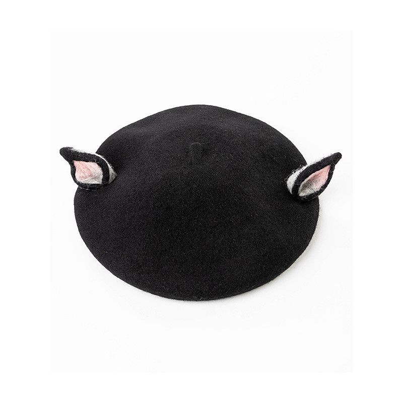 Women's Mardi Gras Cute Animal Beret – Wool Felt Cap with Ears (Fox, Frog, Deer) in Multiple Colors for Carnival, Cosplay and Costume Parties