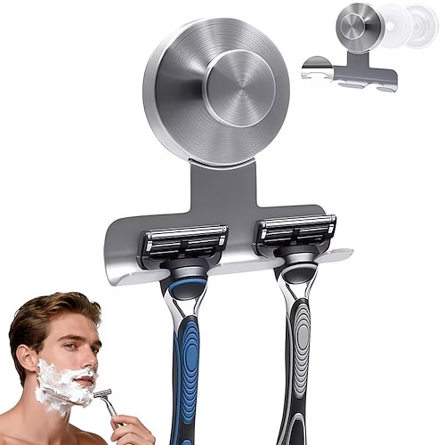 Robuster Rasiererhalter aus Edelstahl (7 kg) mit Saugnapf für die Dusche – Wandmontage aus Edelstahl 304, abnehmbar und ohne Beschädigung, auch für Handtücher, Luffaschwämme und andere Kleinigkeiten