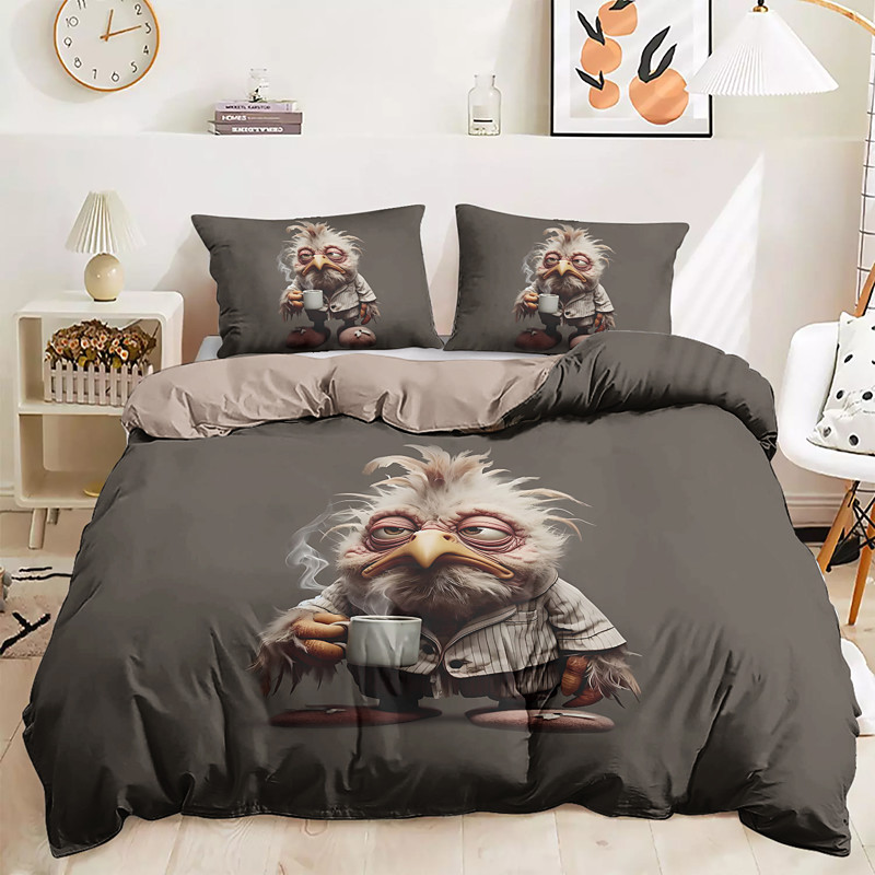 Duvet Cover Set with Funny Rooster Print, 100% Cotton, Soft and Breathable Fabric, Includes Duvet Cover and Pillowcases, Hypoallergenic and Skin-Friendly, Machine Washable, Durable, Comfortable