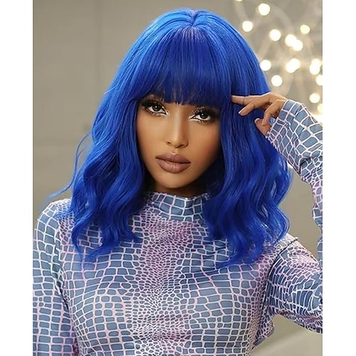 parrucche con onde d'acqua lunghe fino alle spalle, parrucche sintetiche con frangia da donna, alla moda per l'uso quotidiano in cosplay