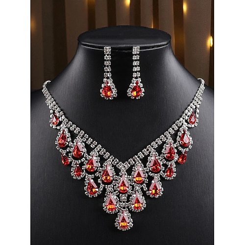 set di collana e orecchini a goccia viola placcati in argento da donna: eleganti gioielli da sposa in cristallo per matrimoni, balli di fine anno e feste formali
