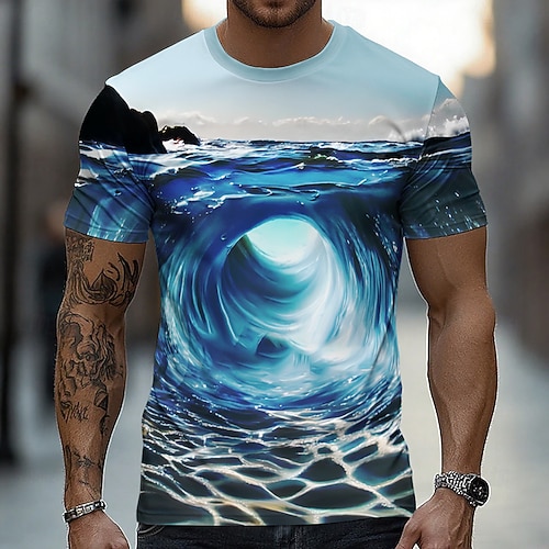 Per uomo Illusione ottica 3D Nautico Maglietta Manica Corta maglietta Stampa 3D Girocollo Camicia Esagerato Designer Feste Streetwear Casuale Blu 2# Blu 1# Blu Estate Primavera Tutte le stagioni