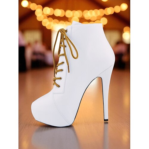 Beige Plateau-Schnürstiefeletten aus Kunstleder für Damen – High Heels mit Stilettoabsatz für Partys im Nachtleben und als Clubwear