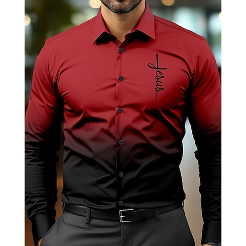 Herren Hemd Sommerhemd Freizeithemd Strandhemd Knopfhemd Rote Blau Orange Langarm Farbverlauf Kreuz Revers Urlaub Hawaiianisch Button-Down Bekleidung Polyester Mode Lässig Bequem