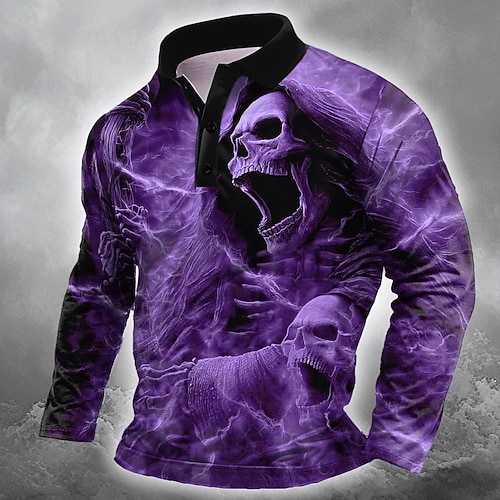 Tag der Toten Herren Schädel Polo Langarm Polo-Shirts Revers Lässig Outdoor Straße Athleisure Alltagskleidung 3D-Druck Knöpfe Frühling Herbst Winter Rote Blau Purpur
