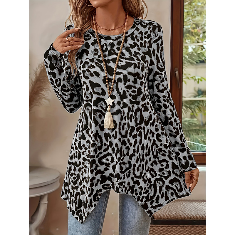 Women's Tunic Graphic Leopard Vintage Fashion Casual Long Sleeve Crew Neck Long Tops Daily Weekend Print Blue Pink Red Purple Brown Fall Winter