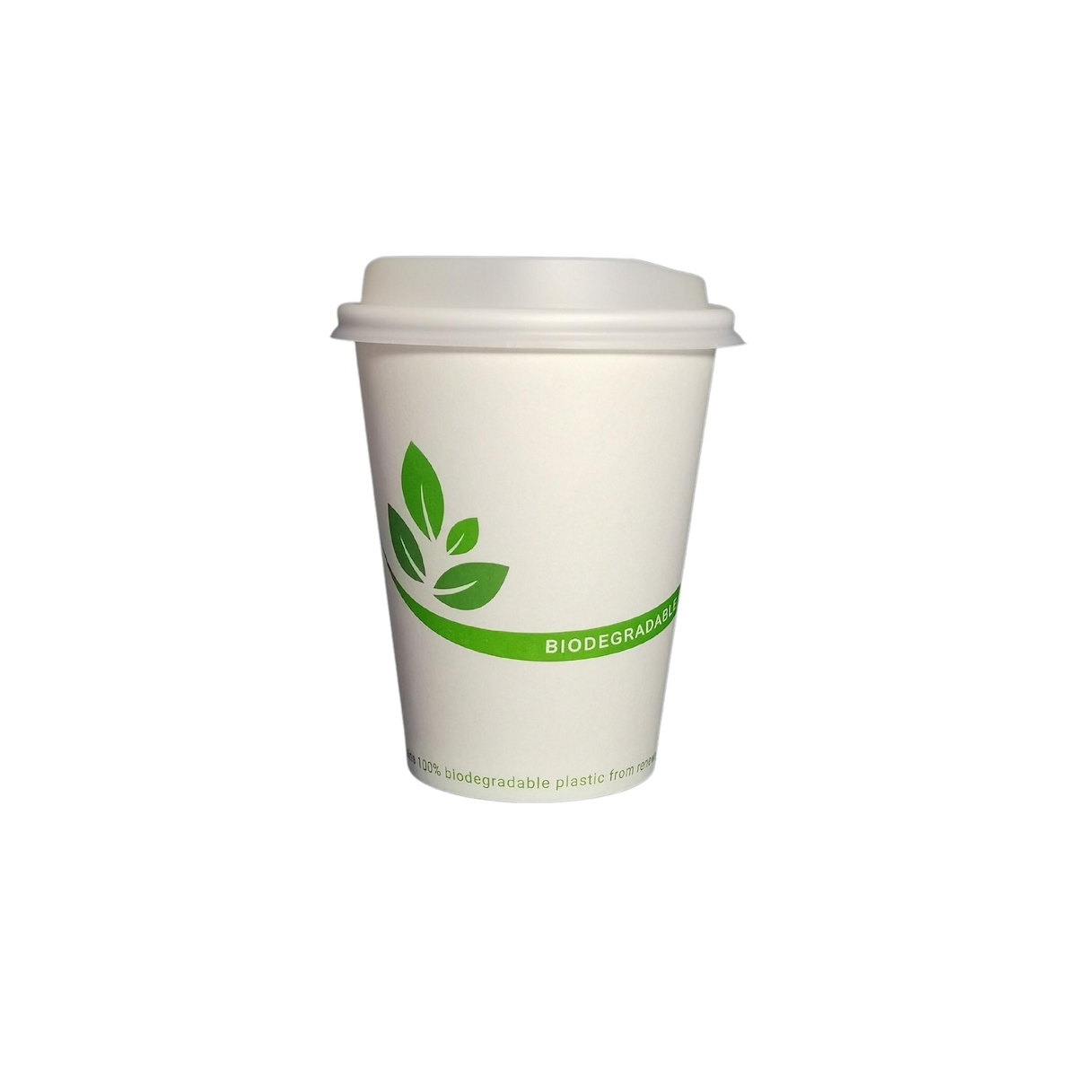 PackBio SPARSET Bio Kaffeebecher 300 ml/12oz mit weißem Bio Deckel (1.000 Stück)