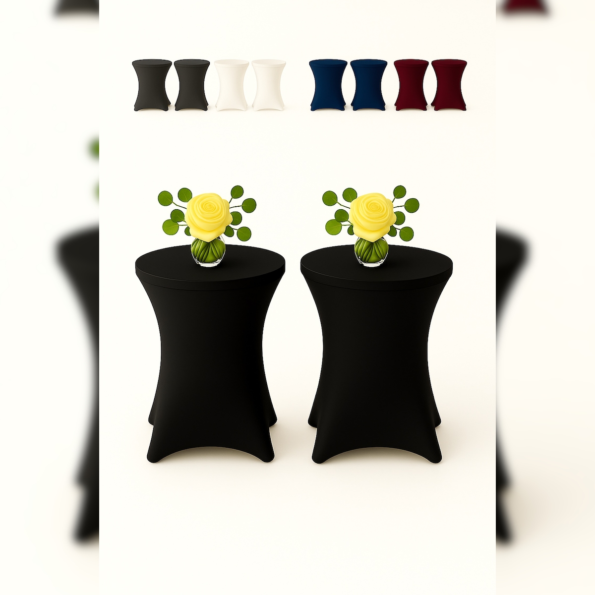 EXKLUSIV HEIMTEXTIL Stehtischhusse für Bistrotisch mit 4 Fußlaschen elastisch Stretch Ø 60-65x110-120 cm Schwarz (2 Stück)