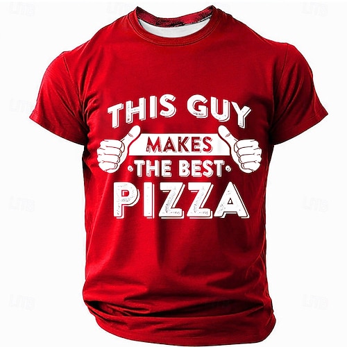 Herren Pizza Lustiger Slang T Shirt Kurzarm T-Shirt 3D-Druck Rundhalsausschnitt Hemd Mode Täglich Straße Täglich Schwarz Rote Blau Sommer Frühling Bekleidung S M L XL XXL XXXL