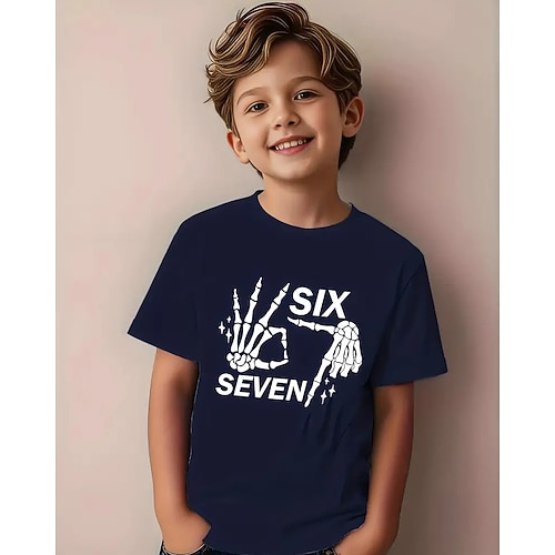 Weihnachten Unisex Jungen 3D Grafik Lustiger Slang 67 T-Shirt Kurzarm 3D-Druck Sommer Frühling Sport Mode Streetwear Kinder 4-12 Jahre Rundhalsausschnitt Outdoor Lässig Täglich Normale Passform