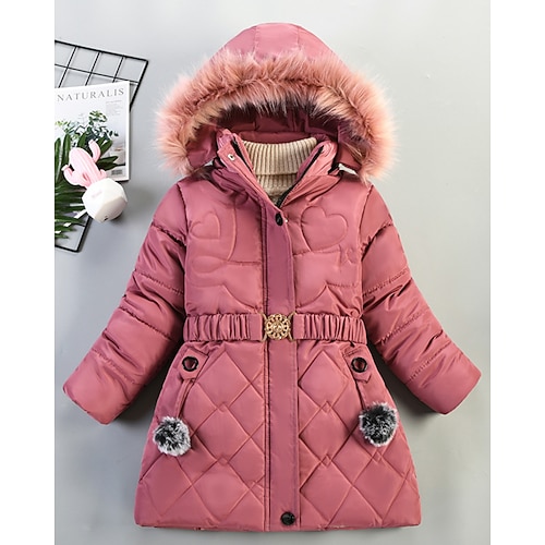 Kinder Mädchen Daunenmantel Einfarbig Mode Fellbesatz Reißverschluss Tasche Schule Mantel Oberbekleidung 4-12 Jahre Winter Schwarz Rosa Rote